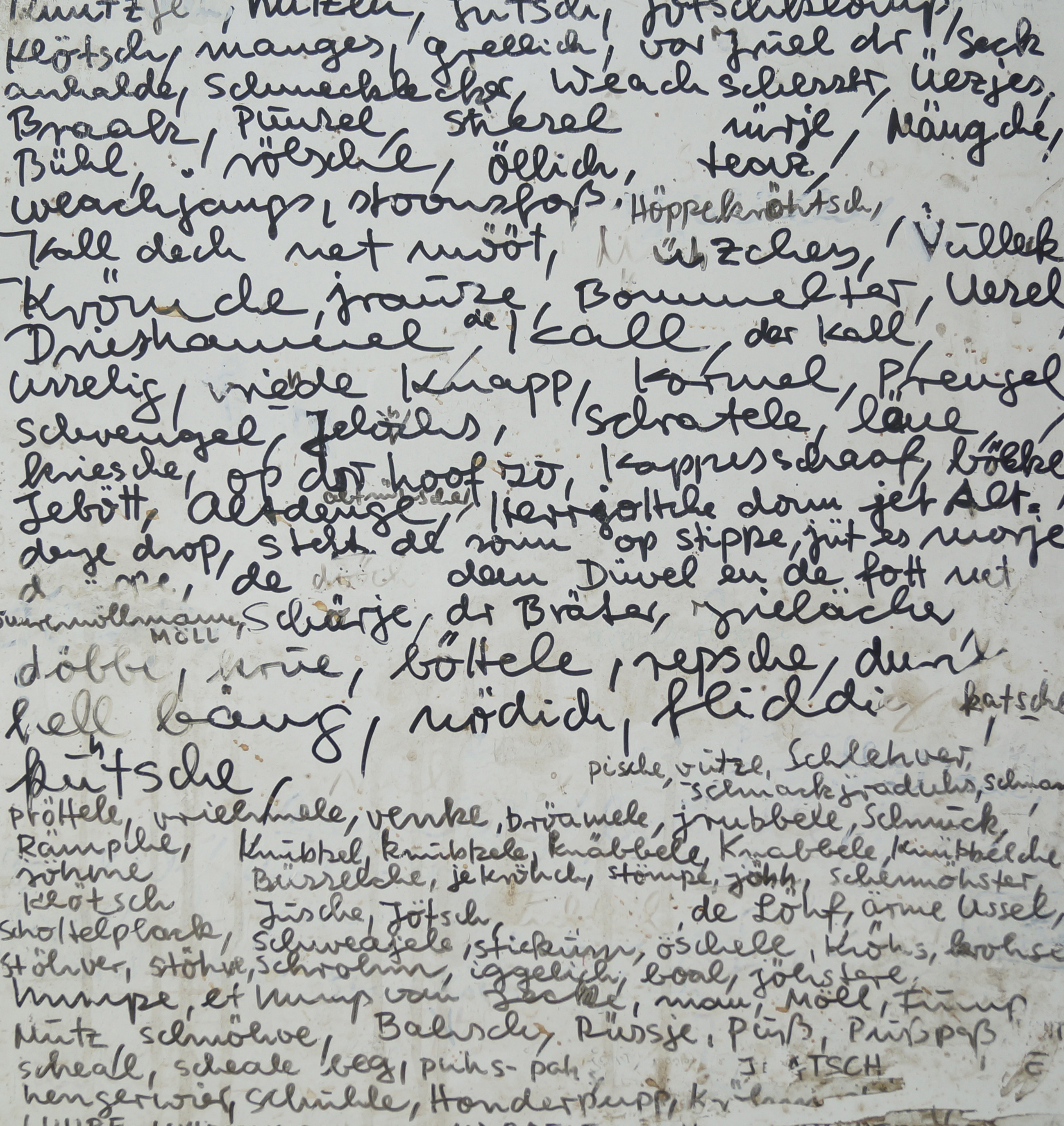 Otzenrath-Hochneukirch, das die Künstlerin Inge Broska zu ihrer Lebensaufgabe gemacht hat. Sie zählt ebenfalls zu den aktiven Mitgliedern des Wörterbuch-Arbeitskreises. Das auch als Alltagsmuseum bezeichnete Haus dokumentiert, archiviert und bewahrt das Leben wie auch die Veränderung dieser Region über einen Zeitraum von einhundert Jahren. Hier hat auch die handschriftliche Mundart-Wörtersammlung ihren Platz. Das Bewahren einer Mundart stellt in vielen Vorworten von Mundartwörterbüchern ein wichtiges Motiv für die enorme Sammelarbeit dar, die einem solchen Projekt zugrunde liegt. Mit der Umsiedlung des ganzen Dorfes erhielt die Wortsammlung in Otzenrath ein ganz besonderes Gewicht. Denn es galt, das Loch zu füllen, das der Tagebau bei den Wörterbuchbearbeitern gerissen hat. Es gibt eine Reihe angefangener Wörterbuch-Projekte, die mit Enthusiasmus begonnen und leider aus verschiedenen Gründen kein Ende gefunden haben. Umso erfreulicher ist es dann, wenn ein solches Unterfangen zum Abschluss kommt, von welchem die meisten Autoren am Anfang ja nicht ahnen, wie viel Zeit man für ein solches Projekt investieren wird. In der Arbeitsgruppe des Geschichtsvereins wurde das Ende der Produktionsphase beschlossen, auch wenn die Autoren wussten: „Die Dokumentation wird nie vollständig“, denn es fielen ihnen immer wieder weitere Mundartwörter ein.